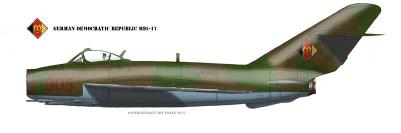 Mikoyan-Gurevich MiG-17. Profile depicts a Mig-17 from the former East German Air Force. Created using iDraw and Photoshop
