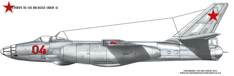 Soviet Union Ilyushin Il-28 (Beagle) bomber of the Cold War era. Completed using Adobe Illustrator and Adobe Photoshop.